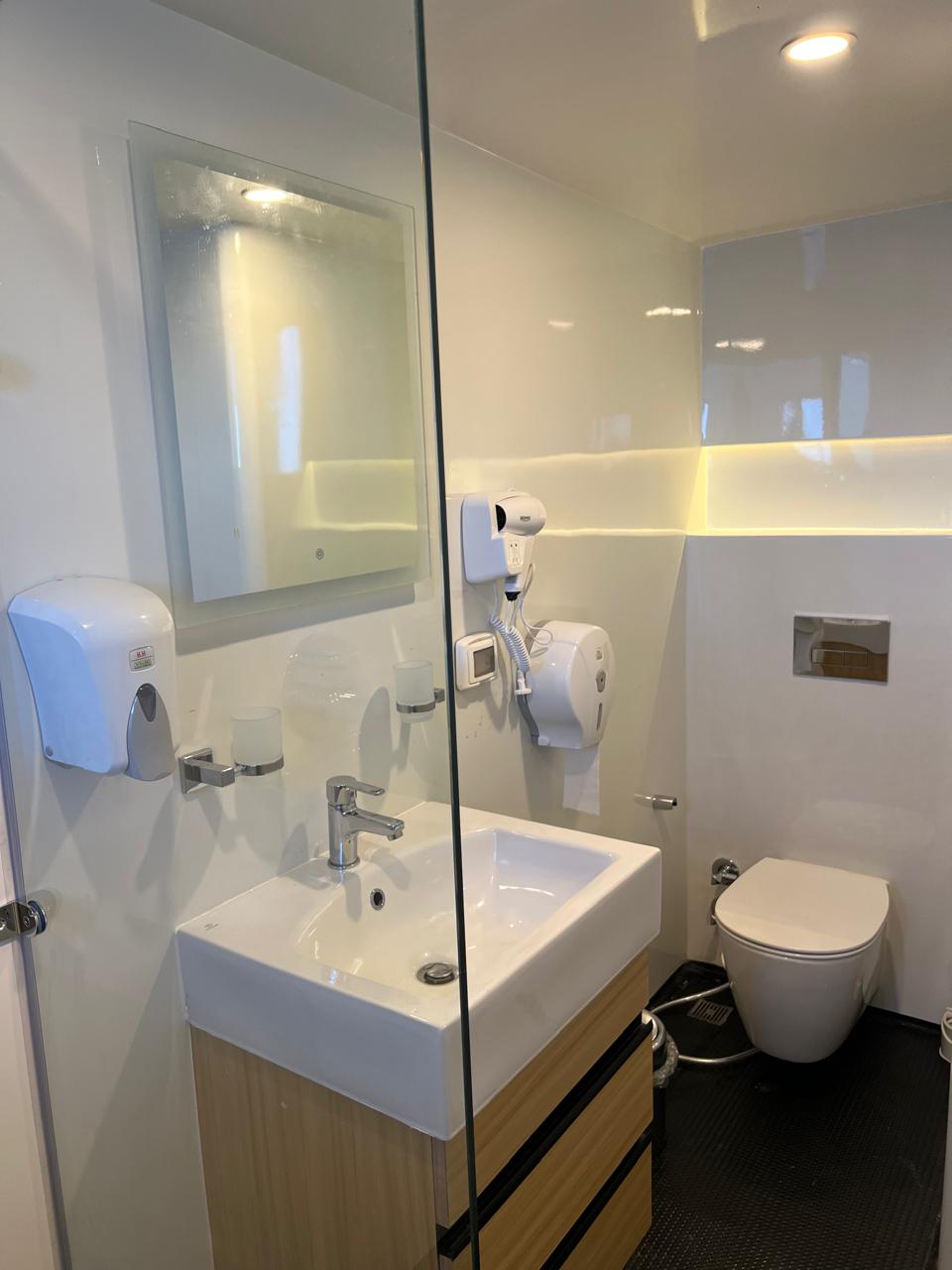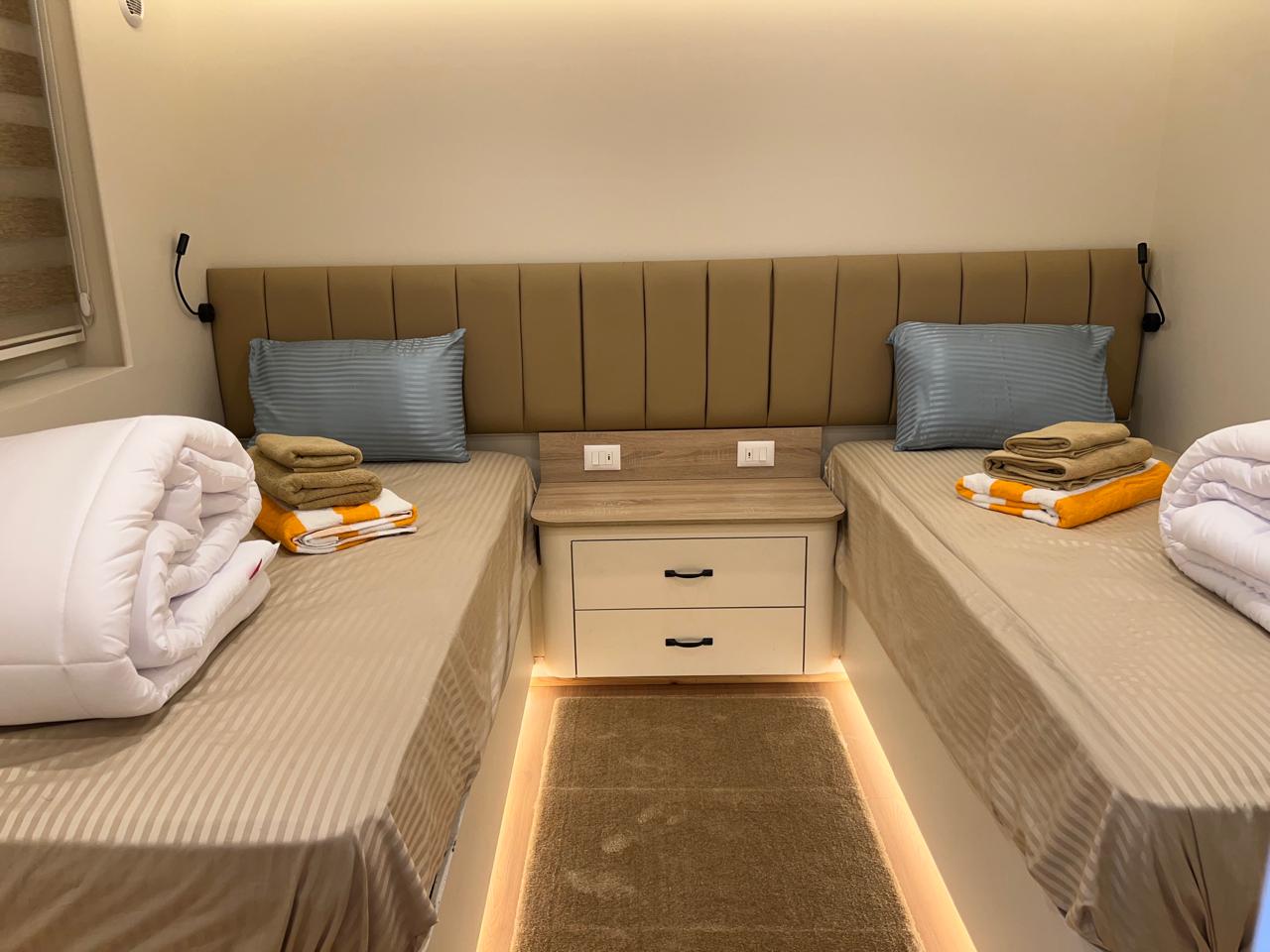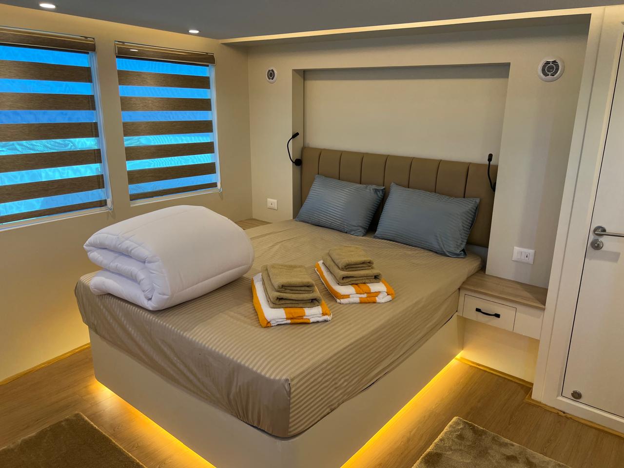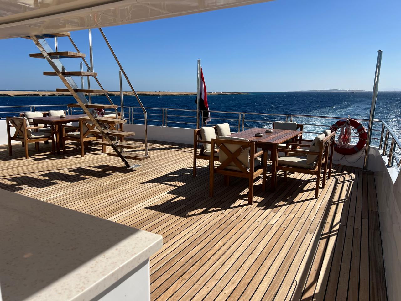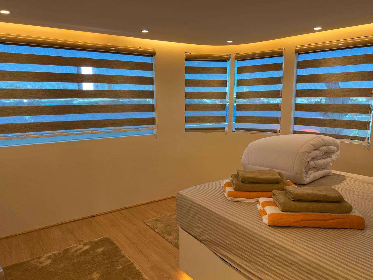 | Salon | Lounge: A separate space furnished with comfortable sofas, coffee tables, and a large bar stocked with both soft and alcoholic drinks. Dining Area: A spacious area equipped with large tables and comfortable seating to accommodate all guests. Meals are served in an open buffet style. |