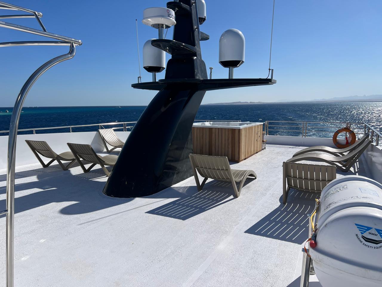 | Sundecks | 2 shaded sundecks, 1 with bar Skydeck with Jacuzzi |
